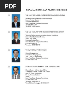 Senarai Nama Dan Alamat Menteri Pdf